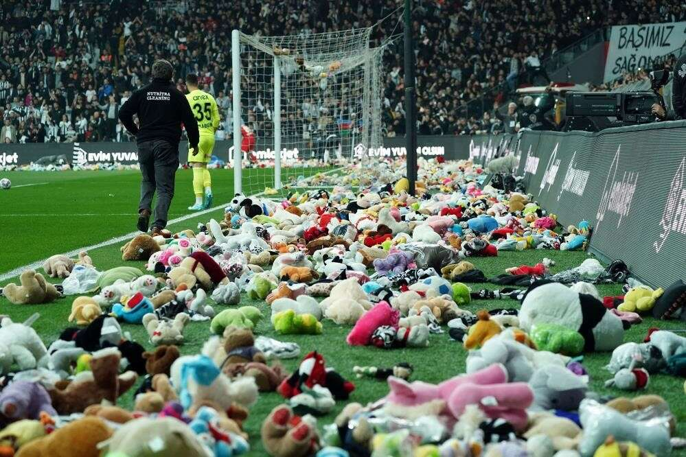 “Beşiktaş taraftarları depremden kurtulan çocuklara oyuncak bağışlarken, maç sırasında futbol sahasına oyuncak ayılar yağdı.”