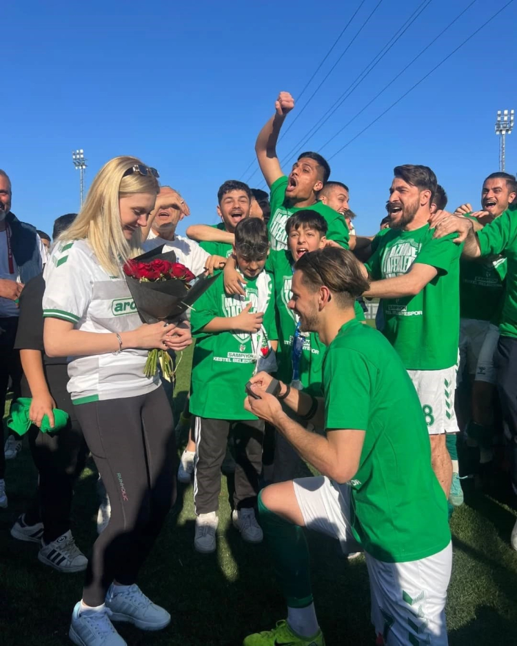 Kestel Belediyespor geçtiğimiz pazar günü Atıcılar Veysel Karani Sahası'nda oynanan Küplüpınar Yeşildağspor karşılaşmasını 3-0 kazanarak adını Bölgesel Amatör Lig'e (BAL) yazdırdı. Kestel Belediyespor forması giyen 24 yaşındaki tecrübeli kanat oyuncusu Hafız Görkem Vardar, maçın bitiminde kız arkadaşına sahada evlenme teklifinde bulundu.