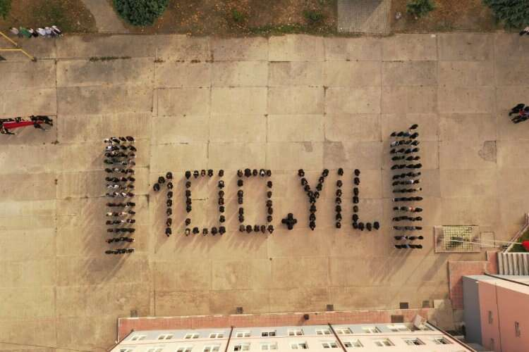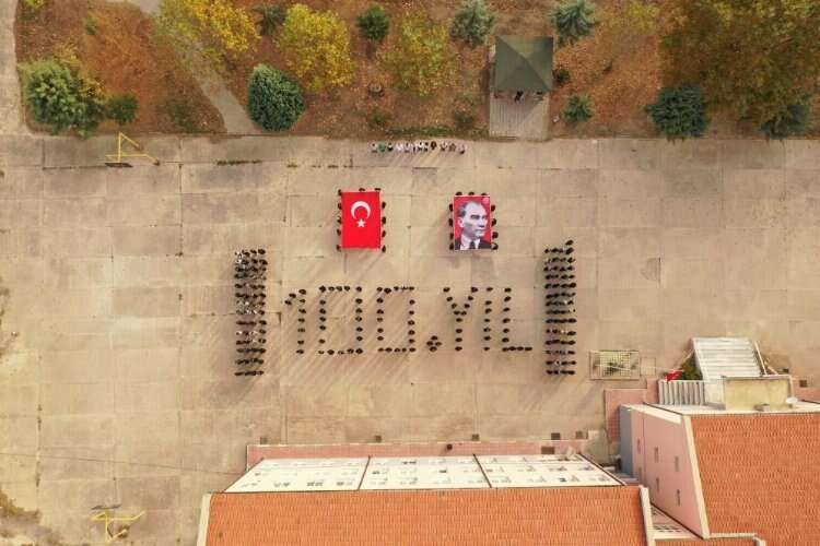 Bursa’nın Orhaneli ilçesindeki Türkan Sait Yılmaz Anadolu Lisesi öğrencileri koreografi çalışması gerçekleştirdi. 230’a yakın öğrenci ve öğretmenleri ile birlikte okul bahçesinde 100. Yıl koreografisi yaptı.