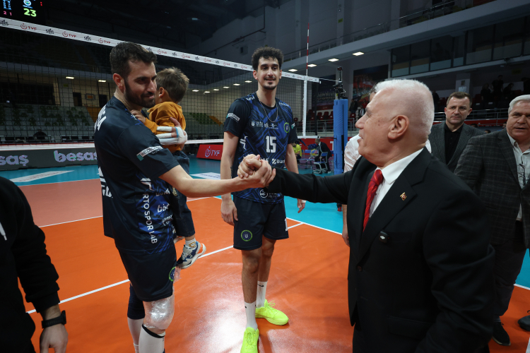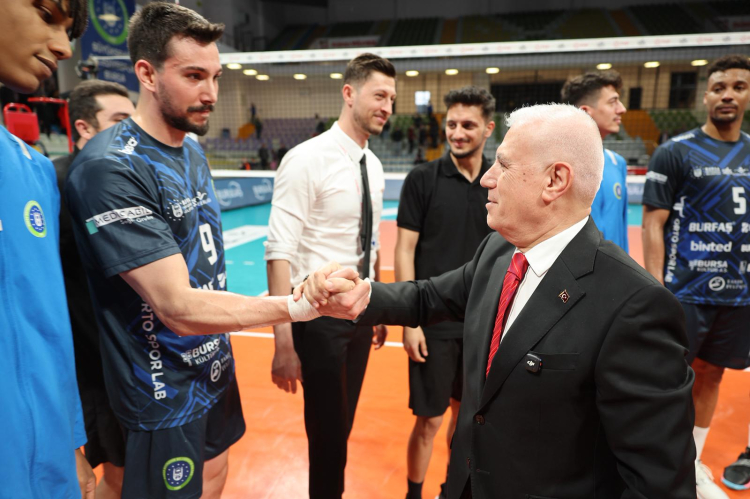 Mücadeleyi tribünden takip eden Bursa Büyükşehir Belediye Başkanı Mustafa Bozbey de maç sonrası sahaya inerek sporcuları tek tek tebrik etti.