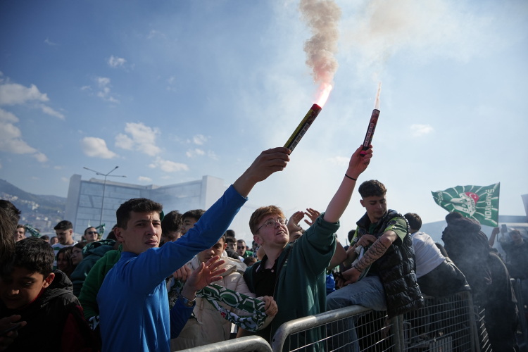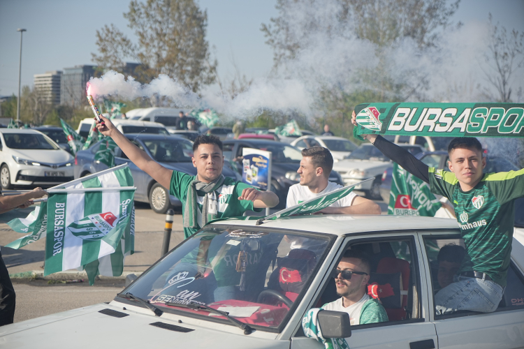 Müsabakanın bitmesinin ardından meşaleleri yakan Bursasporlu taraftarlar, şampiyonluğu coşkuyla kutladı.