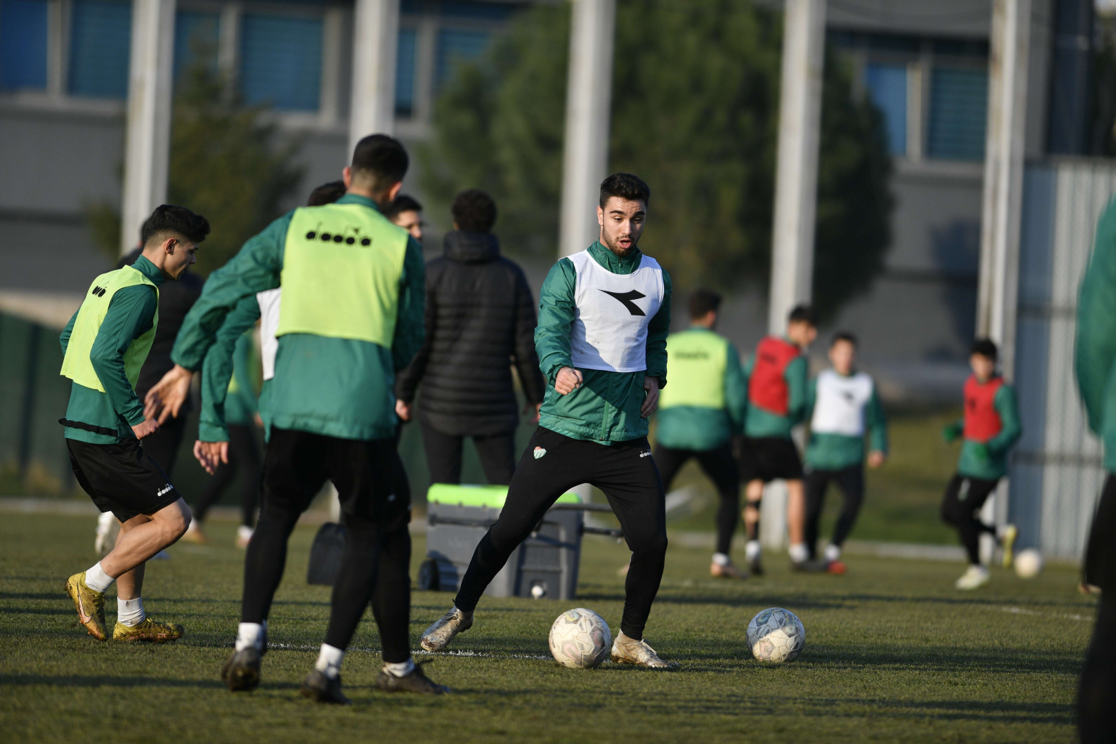 Bursaspor günü çift idmanla tamamladı. Yeşil-beyazlılar, çift kale maç yaptı.