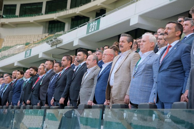 Eski Sanayi ve Teknoloji Bakanı Mustafa Varank da Bursaspor Olağan Genel Kurulu’nda konuştu. Varank, “Bursa, Türkiye’nin potansiyeli en yüksek şehirlerinden bir tanesidir. Türkiye’nin marka şehirlerinin başında geliyor. Ben de son seçimlerden itibaren siz değerli hamsilerimizin teveccühle bu markayı nasıl yükseltiriz diye çalışmaya devam ediyorum. Bu şehrin en önemli markası da Bursaspor. Sadece Bursalıların gönlünde değil Anadolu’nun da gönlünde taht kurdu Bursaspor. 2010’da büyük başarıya imza atmış bir futbol kulübü. Bu marka değerimizi eski şanlı günlerine taşımak istiyoruz. Bursaspor’umuzu sadece Türkiye’de değil Avrupa’da da yoluna emin adımlarla devam eden bir kulüp haline getirelim. Bunun yolu da birlik olmaktan geçiyor. Bursa’da bir yürüdüğümüzde ‘Sayın bakanım Bursaspor’a sahip çıkın’ diyorlar. Farklı bir Bursaspor inşa etmeye başladık. Buna da devam edeceğiz. Uludağ OSB’de Enes Çelik’in ne kadar becerikli ve Bursaspor sevdalısı olduğunu net bir şekilde gördüm. Bu ekip Bursaspor’u çok farklı yerlere getirecektir. İş dünyasının da kulübe sahip çıkması lazım. Herkes her konuda taşın altına elini koyacak. Gaziantep’te, Kayseri’de, Konya’da gördüm. İş insanlarının sahip çıkmasıyla neler olabileceğini gördüm. Bursaspor’a da sahip çıkın. Bu takımın önünü hep birlikte açalım. Şampiyon Bursaspor’u tekrar Türkiye’nin gündemine sokacağız” ifadelerini kullandı.