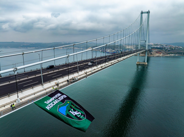 16 yıl sonra Süper Lig'e yükselmenin coşkusunu yaşamaya devam eden Kocaelispor taraftarı, Kocaeli Büyükşehir Belediye Başkanı Tahir Büyükakın'dan Osmangazi Köprüsü'ne dev bayrak asılmasını istedi. Taraftarı kırmayan başkan Büyükakın, "İstediniz, yaptık" diyerek İzmit Körfezi'nde dev bayrağı dalgalandırdı.