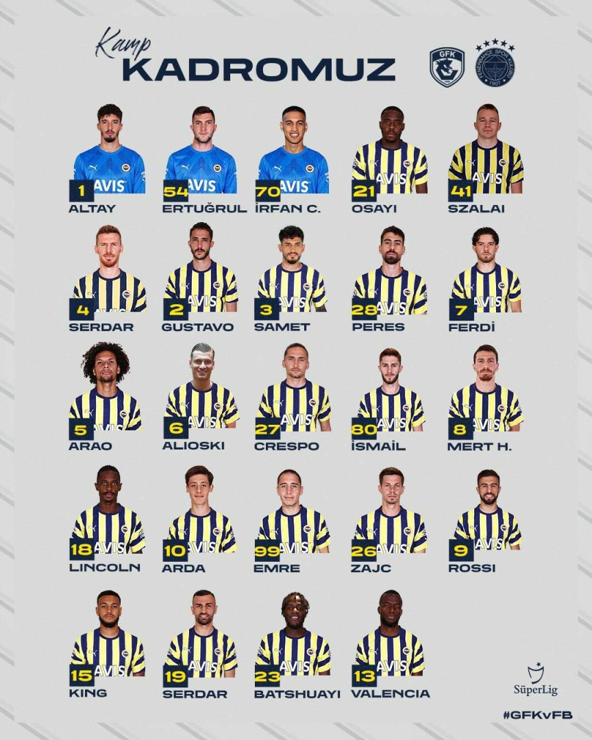 "Altay Bayındır, Ertuğrul Çetin, İrfan Can Eğribayat, Bright Osayi-Samuel, Attila Szalai, Serdar Aziz, Gustavo Henrique, Samet Akaydın, Luan Peres, Ferdi Kadıoğlu, Willian Arao, Ezgjan Alioski, Miguel Crespo, İsmail Yüksek, Mert Hakan Yandaş, Lincoln Henrique, Arda Güler, Emre Mor, Miha Zajc, Diego Rossi, Joshua King, Serdar Dursun, Michy Batshuayi, Enner Valencia"