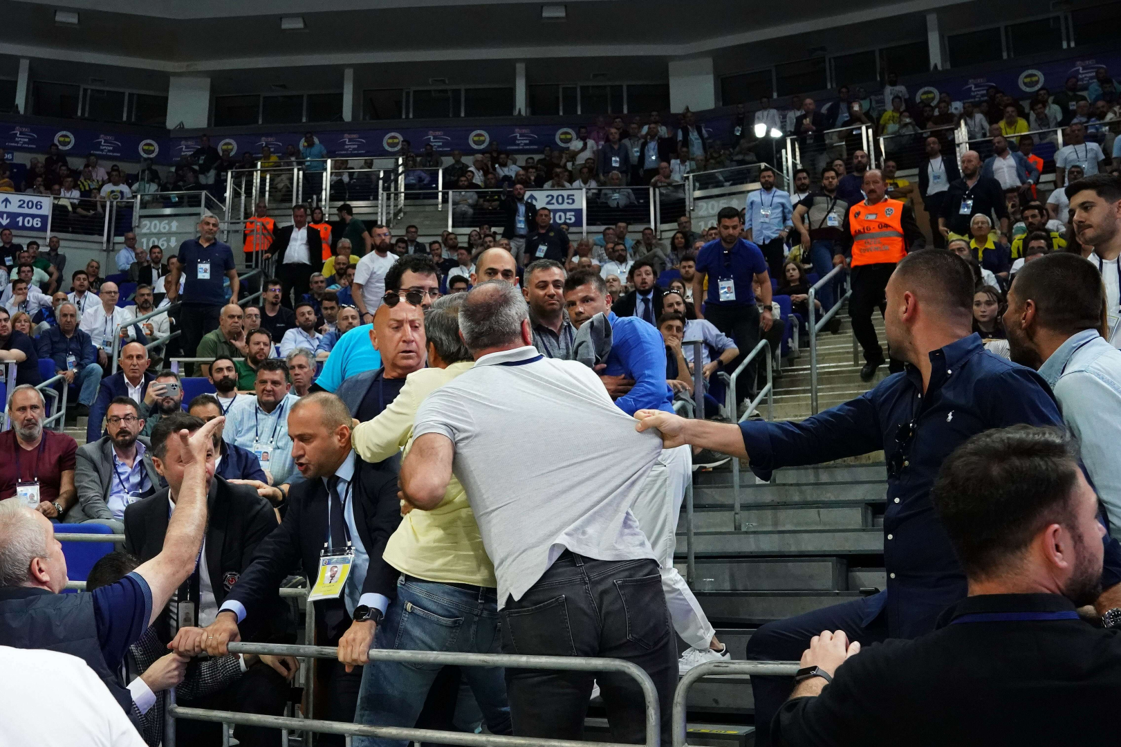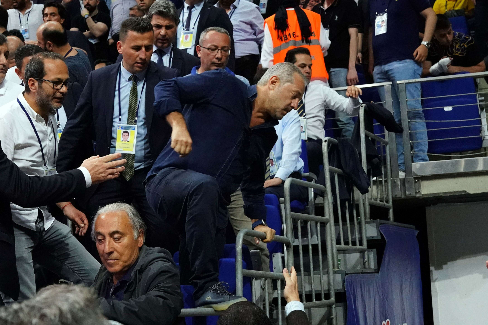 Tartışma güvenlik görevlilerin araya girmesiyle yatıştırıldı ve Ali Koç daha sonra konuşmasına devam etti.