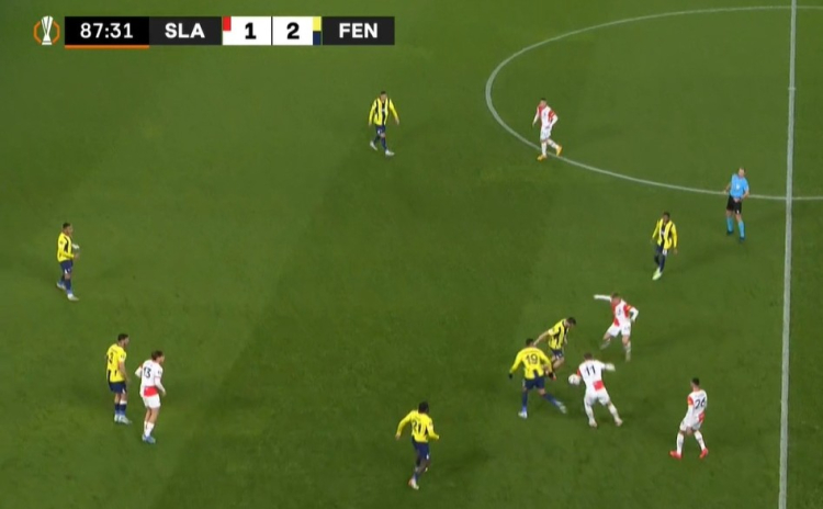 Sarı kartlar: Zafeiris, Lukas Provod (Slavia Prag), Allan Saint-Maximin, Edin Dzeko, Fred, Samet Akaydin (Fenerbahçe)
