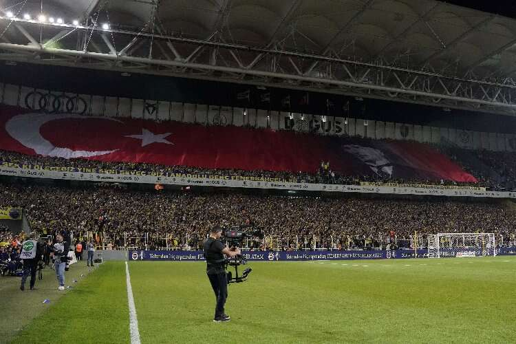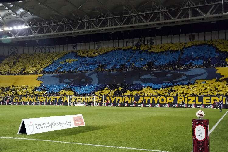 Trendyol Süper Lig'in 11. haftasında Fenerbahçe, Ülker Stadyumu'nda Trabzonspor'u konuk ediyor. Mücadeleye yoğun ilgi gösteren sarı-lacivertli taraftarlar tribünleri tıklım tıklım doldurdu. Takımların seremoniye çıktıkları anda ise hazırlanan koreografiler açıldı. Spor Toto Tribünü'nde sarı zemin üzerine mavi tonlarda Türkiye haritası açılırken, alt kısımda "Cumhuriyet'in Feneri aydınlatıyor bizleri" sözü yer aldı.