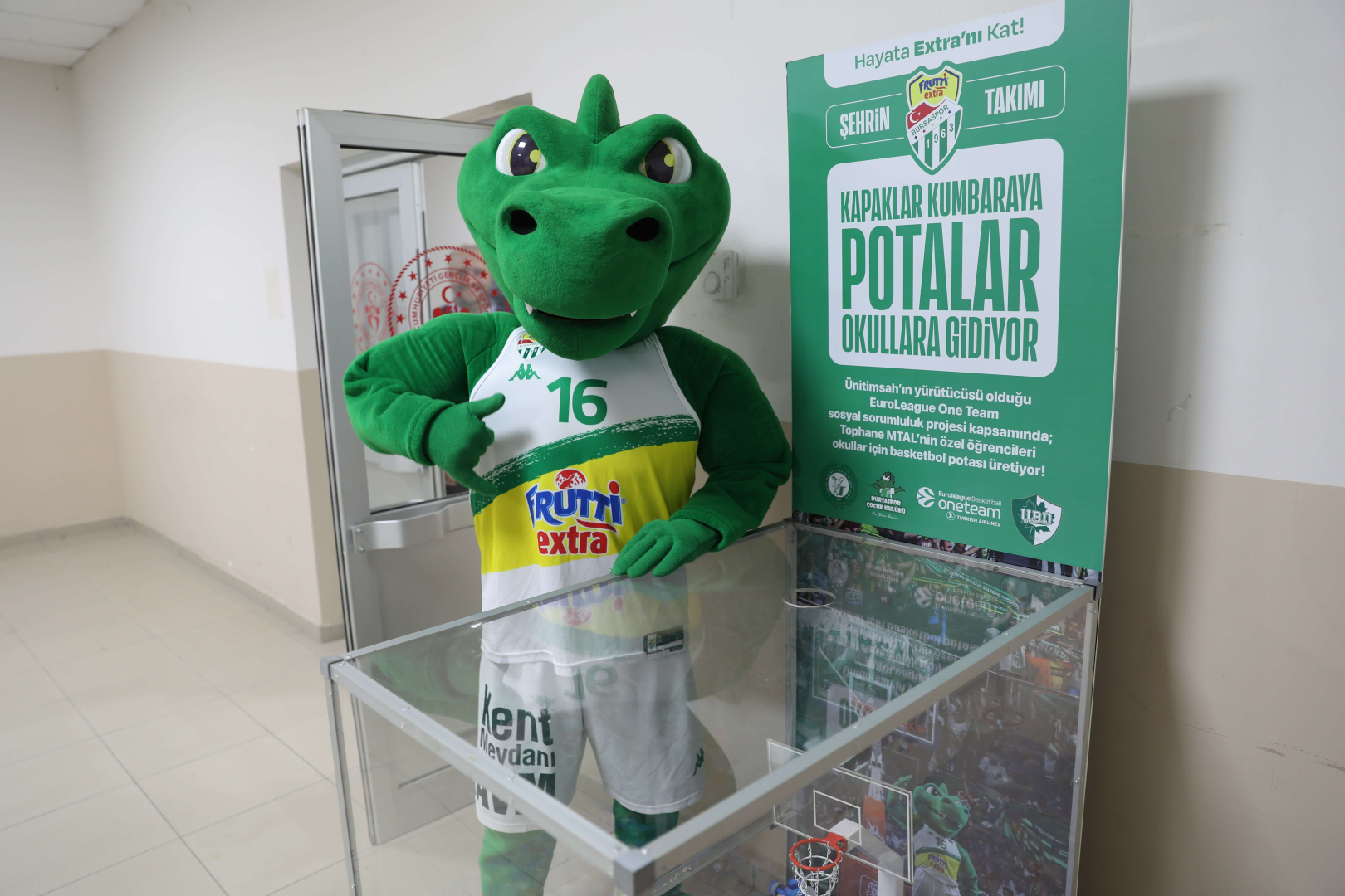 Bursaspor Çocuk Kulübü üyeleri, getirdiği kapaklarla ilk kumbarayı doldururken, cuma günü de İbrahim Uyar İlkokulu’na öğrencilerin ürettiği potalar monte edilmiş olacak. Ünitimsah’ın 20. yılında hayata geçen Bursaspor Çocuk Kulübü, şehir aidiyeti ve Bursasporluluk bilinci temelinde yeni nesillerin sosyal sorumluluk çalışmalarının parçası olmasına yönelik etkinlikler gerçekleştiriyor. Gerek futbol gerekse basketbol maçlarının sıkı birer takipçisi olan minik timsahlar; Frutti Extra Bursaspor’un pazar günü evinde oynayacağı Konyaspor mücadelesine gelecek taraftarları, biriktirdikleri plastik kapaklarla birlikte, spor salonu girişindeki kumbaraya katkı sağlamaya davet ediyor.