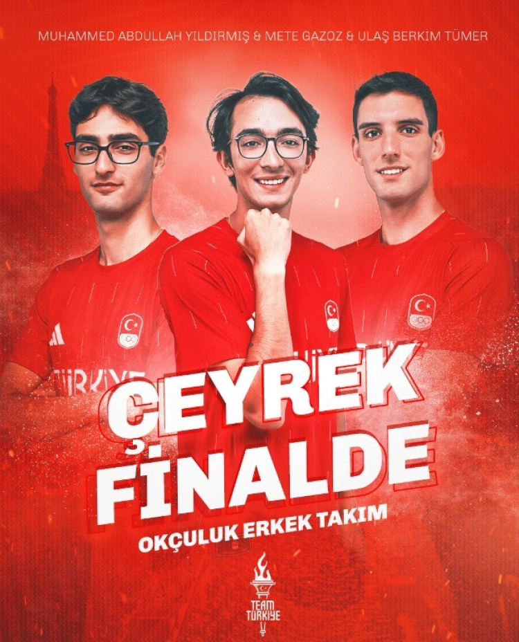 Paris 2024 Olimpiyat Oyunları'nda okçuluk branşında Klasik Yay Erkek Milli Takımı, çeyrek finale kaldı. Mete Gazoz, Ulaş Berkim Tümer, Muhammed Abdullah Yıldırmış'tan oluşan takım, Les Invalides'te yapılan müsabakalarda Andres Vera Hernandez, Jorge Enriquez ve Santiago Arcila'dan oluşan Kolombiya'yı 5-4 yenerek adını çeyrek finale yazdırdı.