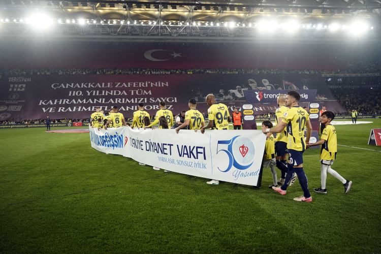 Fenerbahçe-Samsunspor maçı öncesi, Çanakkale Zaferi'nin 110. yılı anısına şehitler anıldı. Dev Türk bayrağı açıldı, hoparlörlerden anons yapıldı, pankartla kahramanlar anıldı. Maç, Süper Lig'in 28. haftasında oynanıyor.