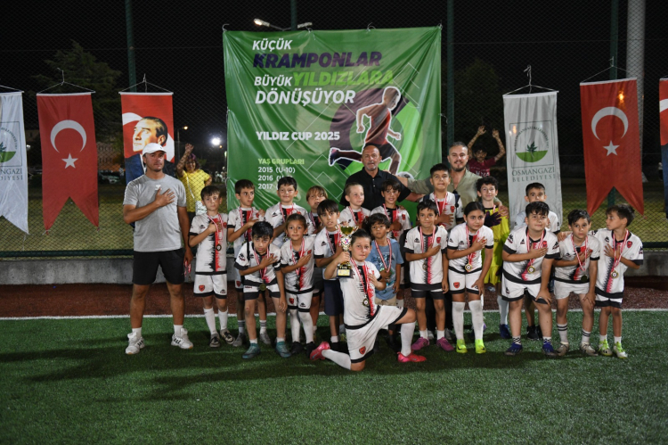 Osmangazi Belediyesi, düzenlediği Yıldız Cup 2025 Futbol Turnuvası ile 8-10 yaş aralığındaki çocuklara adeta bir futbol şöleni yaşattı. 38 takım ve 650 sporcunun kıyasıya mücadele ettiği turnuva, final maçları ve ödül töreniyle sona erdi. Altınova Spor Tesisleri’nde düzenlenen turnuva iki gün sürdü. 2015, 2016 ve 2017 doğumlu çocukların katıldığı turnuva yoğun ilgi gördü. Keyifli anlara sahne olan turnuvada çocuklar kıyasıya mücadele etti. Maçlarda heyecan bir an olsun eksik olmadı. Aileler de tezahüratlarla çocuklarına destek oldu. Büyük çekişmelere sahne olan final maçlarında heyecan dolu anlar yaşandı. Birlik, beraberlik ve dostluğun vurgulandığı turnuvada, 2015 doğumlular kategorisinde Arabayatağı Spor Kulübü, 2016 doğumlular kategorisinde Bursaspor, 2017 doğumlular kategorisinde ise Kültür Spor Kulübü şampiyon oldu. Turnuvada Gemlik Altınayak Spor Kulübü ise en centilmen takım seçildi.