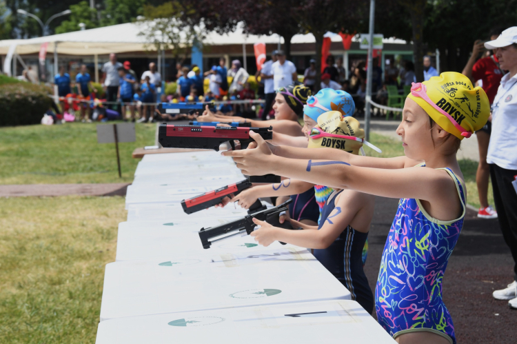 Bursa, Ankara, Konya, İstanbul ve Balıkesir’den 11 takımdan oluşan 9-17 yaş arası 180 sporcunun katıldığı Triathle yarışları 3 branş, 6 kategoride gerçekleşti. Sporcular koşu, yüzme ve atış olmak 3 branşta tüm hünerlerini sergilerken aileleri de büyük heyecan yaşadı. Sukaypark Tesisleri’nde düzenlenen yarışlar 22-23 Haziran tarihlerinde Biathle ve 4. Bölge 2. Etap Akuatlon, müsabakalarıyla devam edecek. Triathle yarışlarında dereceye giren sporcuların madalyaları Osmangazi Belediyespor Başkanı Fatih Karayılan, tarafından verildi.
