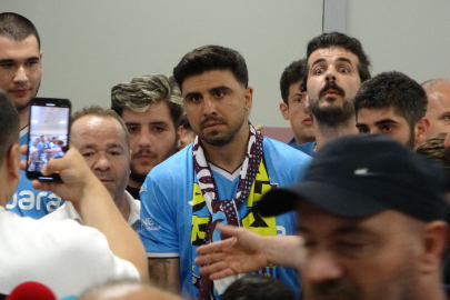 Bordo-mavili taraftarların arasında kendisini bekleyen araca zorlukla binen Ozan Tufan, taraftarlara üçlü çektirdikten sonra havaalanından ayrıldı.