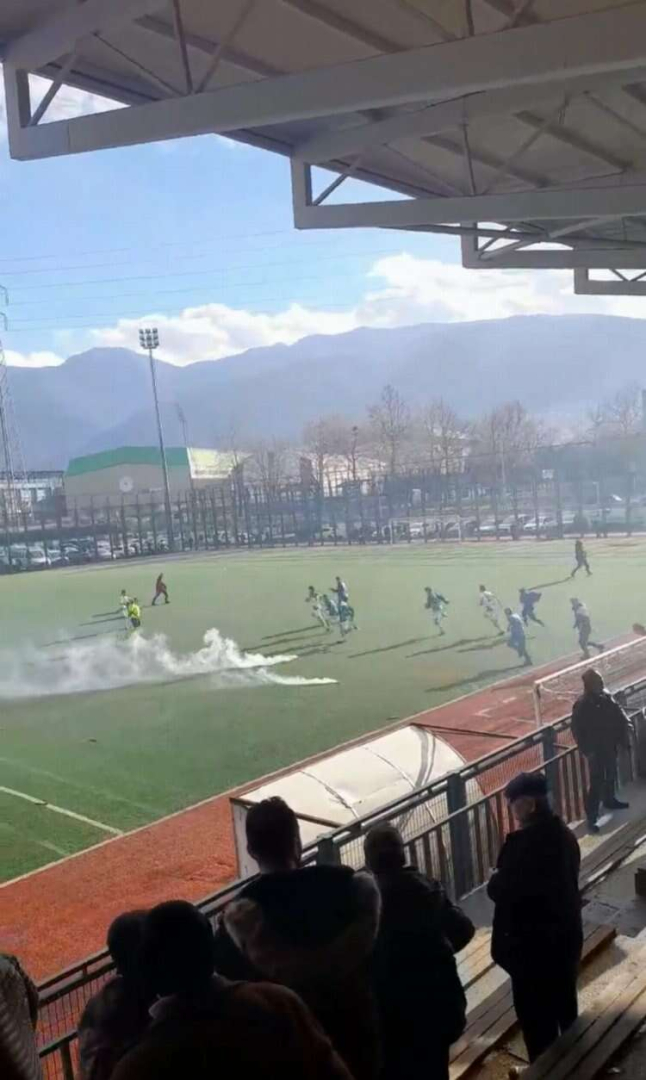 İnegöl Sporlu bir grup holigan, maç öncesi oynanan Namık Kemal Spor ile Emek Spor maçını izlemek istedi. Tribünde rakip takımdan gelen taraftarların olduğunu zanneden holiganlar bir anda kavgaya tutuşup hem sahaya, hem de tribünlere torpil ve meşale attı.