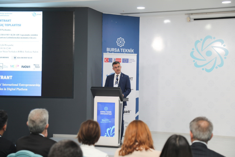 Bursa Teknik Üniversitesi bünyesinde faaliyet gösteren Bursateknopark'ın ERASMUS KA220-ADU Programı kapsamında desteklenmeye hak kazanan “Enhancement of Incubators' International Entrepreneurship and Trade Abilities in Digital Platform” (ENTRANT) projesinin başlangıç toplantısı yapıldı. Mimar Sinan Yerleşkesi Turkuaz Salon'da yapılan tanıtım toplantısına BTÜ Rektörü Prof. Dr. Naci Çağlar, Rektör Yardımcıları Prof. Dr. Sinan Uyanık ve Prof. Dr. Barış Tamer Tonguç, BUSİAD Yönetim Kurulu Başkanı Buğra Küçükkayalar, BUİKAD Yönetim Kurulu Başkanı Şeyda Şençayır, BUİKAD Yönetim Kurulu Başkan Yardımcısı Nazan Akıncı, BTSO Girişimcilik ve Üniversite-Sanayi İşbirliği Konsey Başkanı Hakan Hacızade, paydaş kurumların temsilcileri, iş insanları ve çok sayıda davetli katıldı. Programın açılışında konuşan Rektör Naci Çağlar, BTÜ'nün yapay zekâ, robotlar ve akıllı sistemler başta olmak üzere birçok alanda başarılı projelere imza attığını kaydetti. Rektör Çağlar, “En başarılı girişimlerimizden biri olan ENTRANT Projesi, Ekim 2023'te Ulusal Ajansa sunuldu ve Şubat 2024'te destek aldı. Bu projenin koordinasyonunu sağlayan Teknopark yönetimimiz Bursateknopark'a ve partnerlerine teşekkür ediyorum. Buradaki varlığınız çalışmalarımıza büyük değer katıyor ve biz de sizin fikirlerinizden faydalanmak için sabırsızlanıyoruz. Bu başlangıç toplantısında paylaşılan fikirlerin ve oluşturulan iş birliklerinin hepimize önemli katkılar sağlayacağına inanıyorum” dedi.
