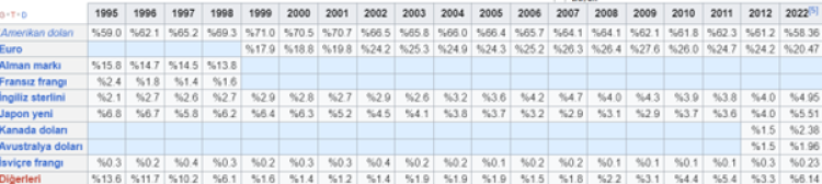 Doların rezerv para olması ve kalması ABD’ye neler sağladı ve neden önemli? Aşağıdaki tabloya göz atmanızı rica ediyorum, dünyadaki belli başlı para birimlerini ve rezervde tutulma oranlarını gösteriyor.