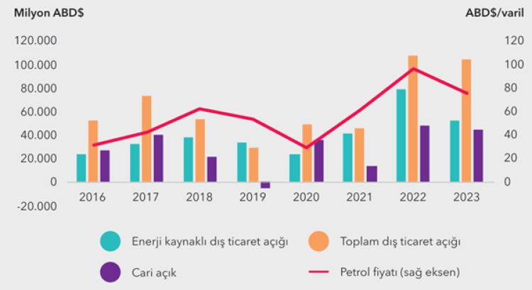 İthalata mecbur olduğunuzda uluslararası enerji piyasalarındaki hareketler ülkenin ekonomik dengesini olumsuz etkilemektedir. Yukarıdaki tabloya bakın, pandemi sonrası ve Ukrayna savaşı başlangıcında enerji fiyatlarındaki artışla birlikte bu alandaki ithalat rakamlarımız nasıl artmış. Bu dalgalanma ülke ekonomisindeki her alanı olumsuz etkilemekte ve enflasyon yaratmaktadır.