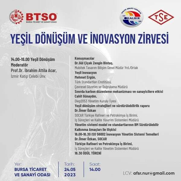 TSE, Bursa Ticaret ve Sanayi Odası ile Kalite Birliği tarafından düzenlenecek olan zirveye katılım ücretsiz. Zirvede genel bilgilendirme yapılacak.