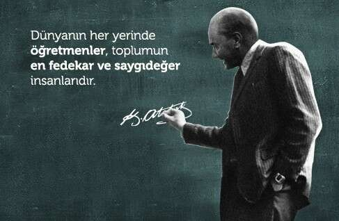 “Milletleri kurtaranlar yalnız ve ancak öğretmenlerdir. Öğretmenden, eğiticiden yoksun bir millet, henüz millet adını almak yeteneğini kazanmamıştır. Ona alelade bir kitle denir; millet denemez. Bir kitle, millet olabilmek için, kesinlikle eğiticilere, öğretmenlere muhtaçtır. Onlardır ki, bir toplumu millet haline getirirler. Bizim milletimiz elbette dünyanın takdirlerine hak kazanmış bir toplumdur. Fakat onu layık olduğu şeref derecesine eriştirecek olan öğretmenlerdir. Millet, memleket, Cumhuriyet öğretmenlerden yüksek hizmet beklemektedir.”(1925)[12]
