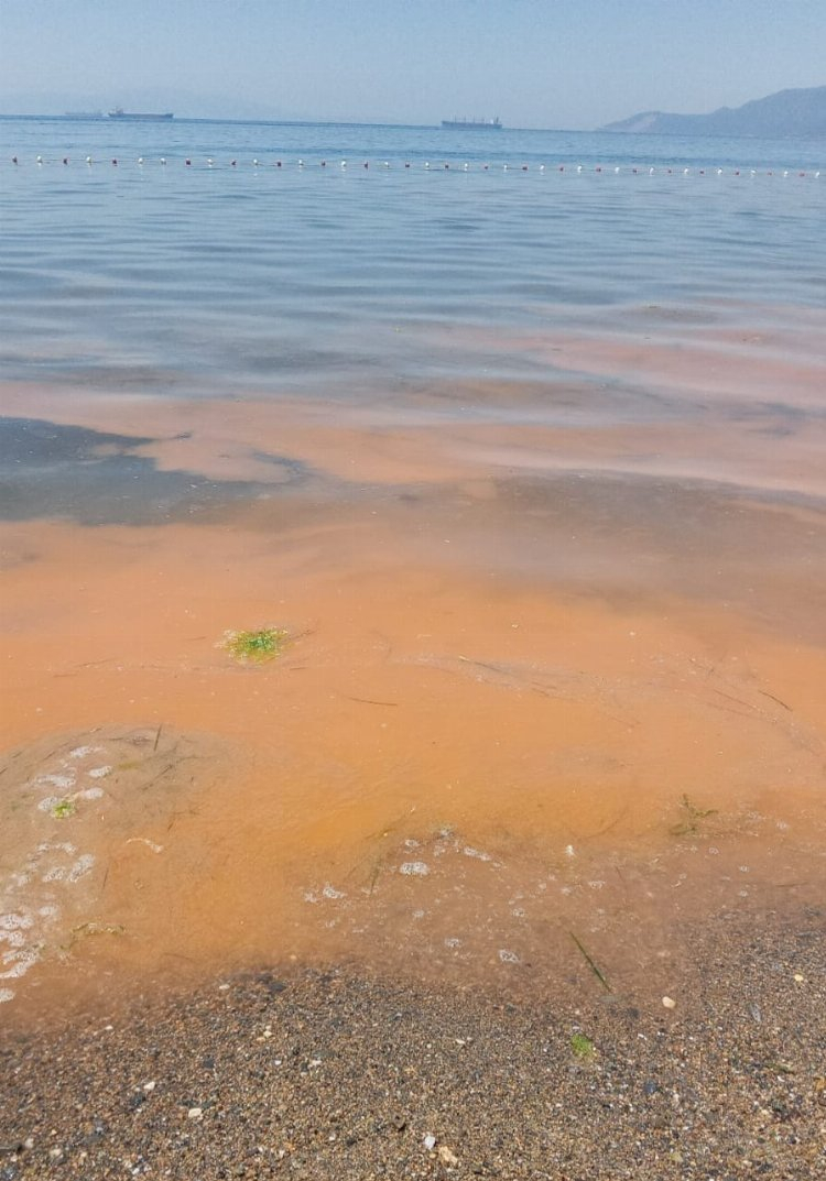 Gemlik Körfezi’nde mavi deniz kırmızıya boyanmıştı ve günübirlik gelenler denize giriyordu.